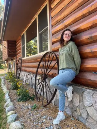 This photo shows a volunteer relaxing outside one of the rustic cabins at the Vince Shute Wildlife Sanctuary in northern Minnesota. Volunteers here join a meaningful wildlife conservation project focused on protecting and understanding American Black Bears.